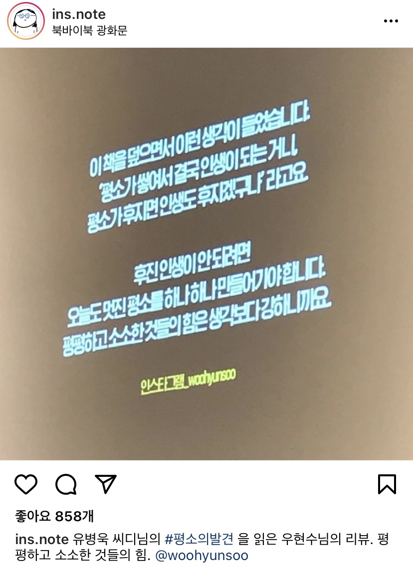뜬금없이 박웅현 님 얘기를 하는 건 소개할 책 ‘평소의발견’을 쓴 유병욱 작가와도 관련이 있어서입니다. 두분은 현재 같은 광고회사를 다니고 한때 한팀이셨던 선후배 사인데요. 두분의 문체가 은근히 닮은 듯 달라서 그걸 비교하면서 읽는 재미도 있었습니다. 이 정도면 TBWA Korea는 글맛집으로 지정해야할듯 합니다.
