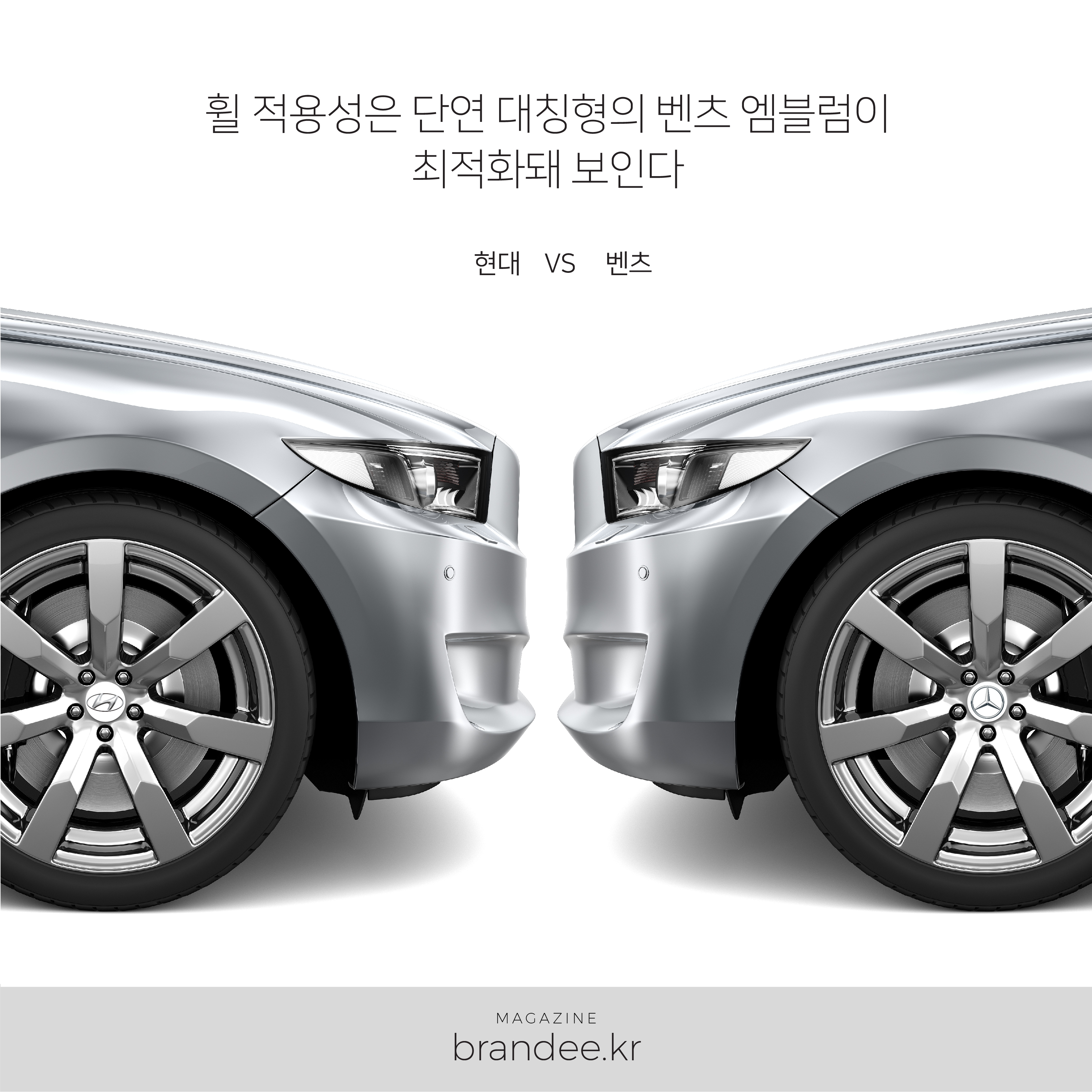 이런 현상은 특히 엠블럼이 바퀴의 휠 정가운데 사용될 때 더 여실히 드러난다. 벤츠와 같은 대칭형 엠블럼과 현대차나 렉서스 같은 비대칭의 사선의 방향성이 있는 엠블럼을 비교해 보자. 차 브랜드 자체의 완성도와 디자인을 떠나 어떤 게 자동차 엠블럼으로 적합한지 금방 알 수 있을 것이다.
