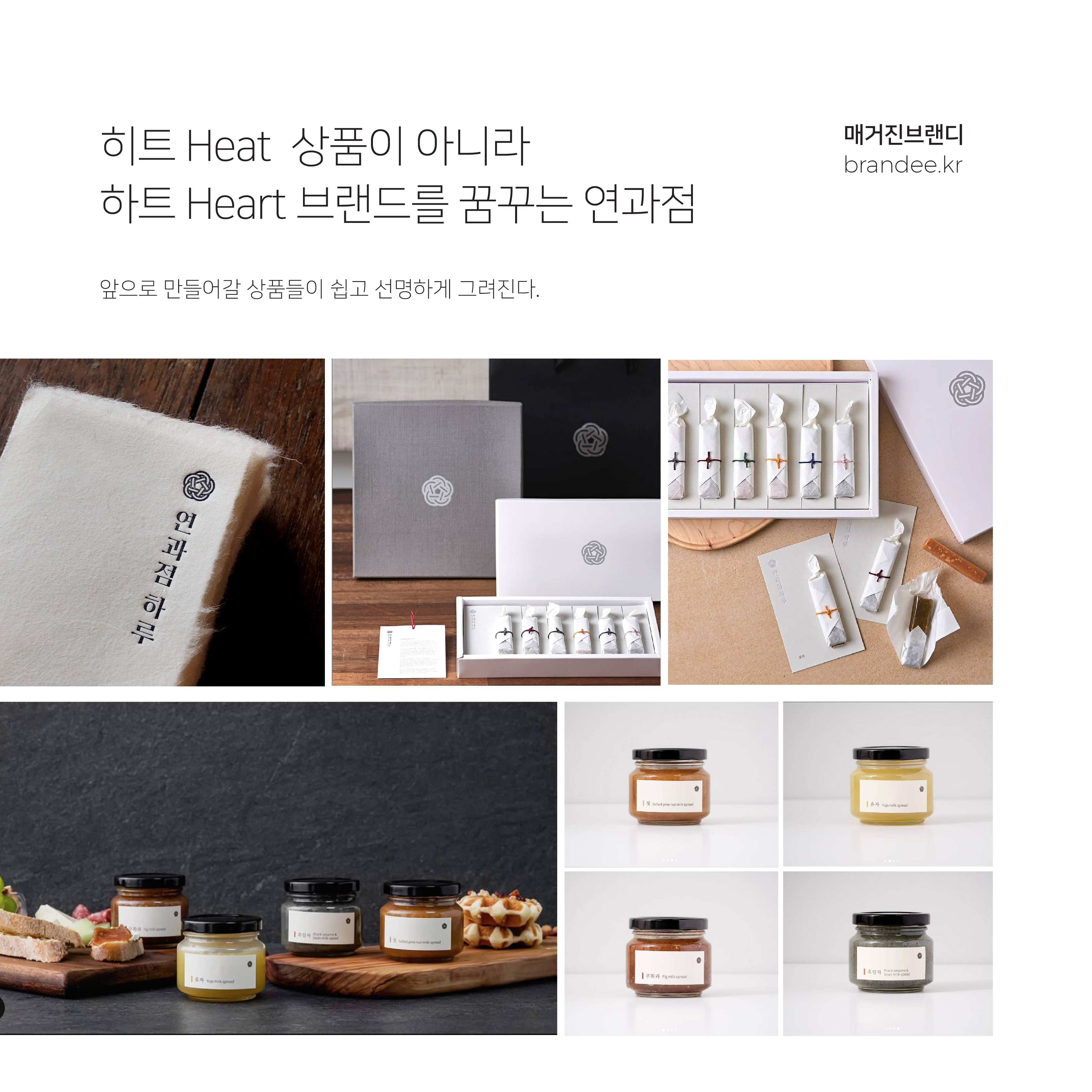 분야는 좀 다르지만 스타트업 중 연과점이라는 브랜드 운영을 보면 이와는 조금 다른 행보가 느껴졌다. 연과점의 대표 상품은 수제 카라멜이다. 워낙 제품 자체의 맛이 특별하고 전체적인 포장의 분위기도 근사해 한 번 경험하면 그 여운이 꽤나 오래가는 상품이다. 맛뿐만 아니라 브랜드 디자인과 포장의 경험까지, 수제 카라멜이라는 상품으로 느껴지기 보다는 연과점이라는 브랜드로 느껴진다. 앞으로 연과점에서서 어떤 간식이나 과자류를 만들더라도 이상할 것 같지 않다. 그 에 따른 디자인도 어떻게 확장되고 적용될지도 선명하게 그려진다. 과일 조림, 빵에 찍어 먹는 스프레드, 한과를 만들어도 어울릴 것 같고 카라멜 만큼의 퀄리티가 다른 상품을 통해서도 맛보게 될 것 같은 믿음을 준다.