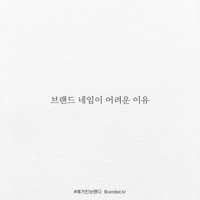 수년간 브랜딩 업계에 있었던 경험에 비추어 말하자면, 브랜딩에 있어 브랜드 네임이라는 산이 제일 높고 험하다. 사실 네임만 정복하면 그걸로 홍보하고 디자인하는 일이야 어떻게든 가능하다. 하지만 이름도 없고 결정되지 않은 상태의 브랜드는 뭔가 뿌연 안개 속에 갇힌 상황처럼 느껴질 때가 많다. 그런 점에서 보면 브랜딩의 출발은 브랜드 네이밍이라고 해도 무리는 아니다.