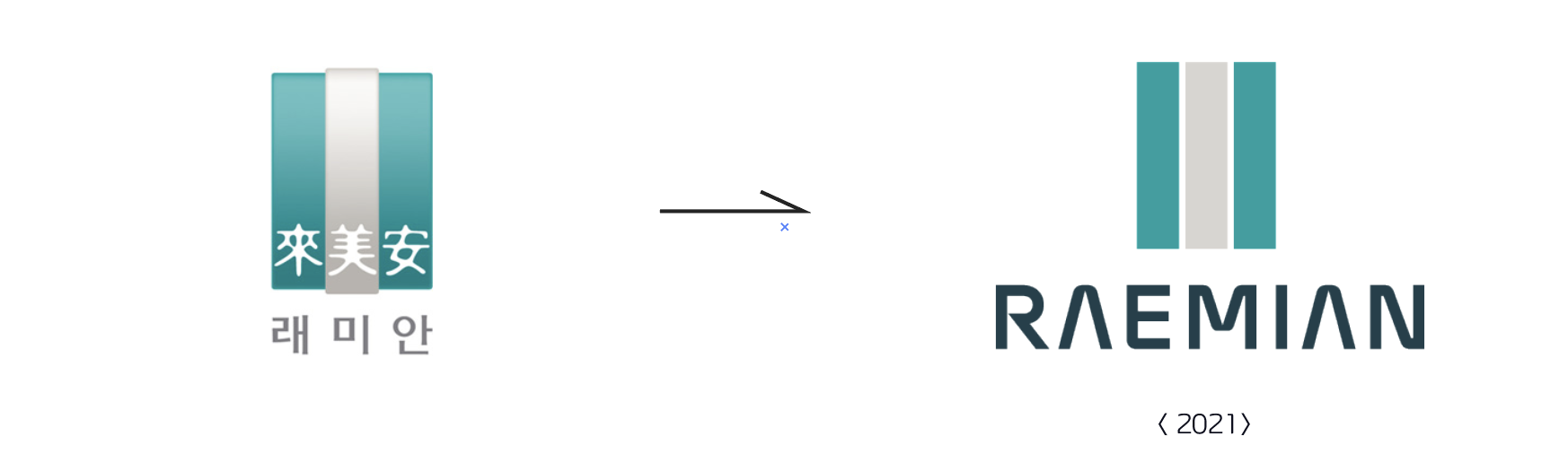 지난 2021년 5월에 래미안 아파트 브랜드가 리뉴얼을 단행했습니다. 세로로 긴 막대형 바안에 있던 한자 '來, 美, 安'가 사라졌습니다. 편안함(安)과 아름다움(美)의 가치를 담은 미래지향적(來) 아파트라는 최초의 네이밍이 가진 의미을 넘어, 이제는 'RAEMIAN' 그 자체로 하나의 독자적인 의미와 이미지를 가진 브랜드가 됐다고 생각합니다. 아마도 20년 전에 3개의 세로막대가 세워진 심벌이 만들어졌다면 받아들여지기가 쉽지 않았을 겁니다. 이제는 어느덧 20년차의 파워 브랜드로 성장했고 익숙한 브랜드가 되면서 과감한 생략을 통한 단순미 넘치게 브랜드 리뉴얼을 할 수 있었겠죠. 2000년 삼성 '三星'이 더 이상 한자어의 뜻으로 해석되지 않고 'SAMSUNG' 그 자체로 브랜드가 된 상황과 유사해 보입니다.