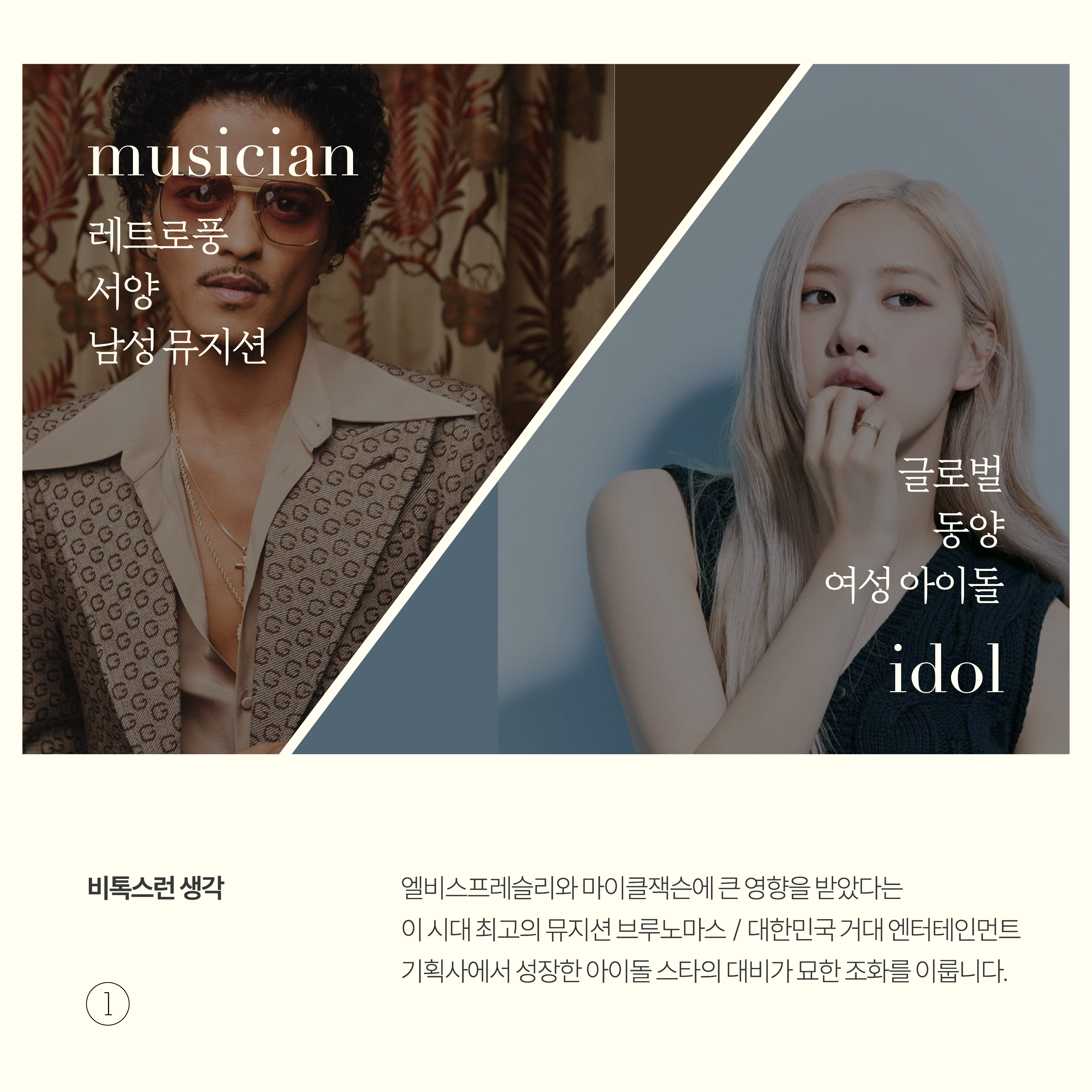 엘비스프레슬리와 마이클잭슨에 큰 영향을 받았다는 이 시대 최고의 뮤지션 브루노마스 / 대한민국 거대 엔터테인먼트 기획사에서 성장한 아이돌 스타의 대비가 묘한 조화를 이룹니다.