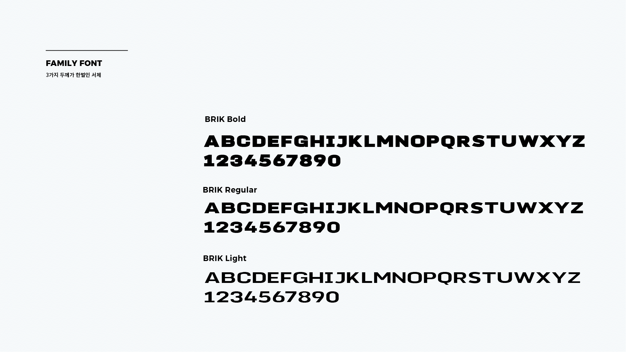 위 서체 제작 스토리의 주인공인 BRIK Font(Light, Regular, Bold)의 다운로드 하실 수 있습니다.