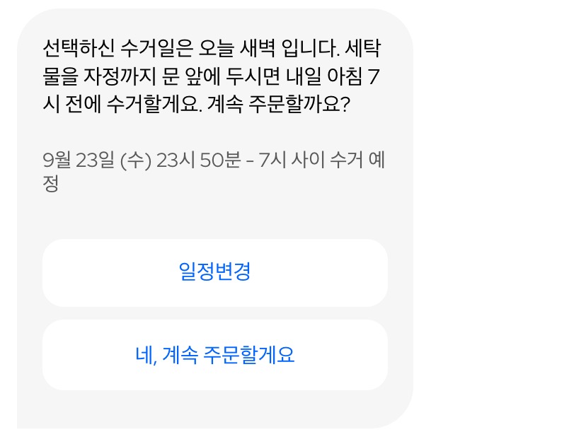 익숙해질만하면 이렇게 슬슬 올라오는 질문들이 지겨워질 때도 있긴 합니다만 새벽에 조용히 수거해가서 다다음날 새벽에 조용히 두고 가는 세탁특공대. 코로나 시대에 비대면으로 세탁을 맡길 수 있다는 것만으로도 충분히 경쟁력이 있는 서비스라는 생각이 듭니다.