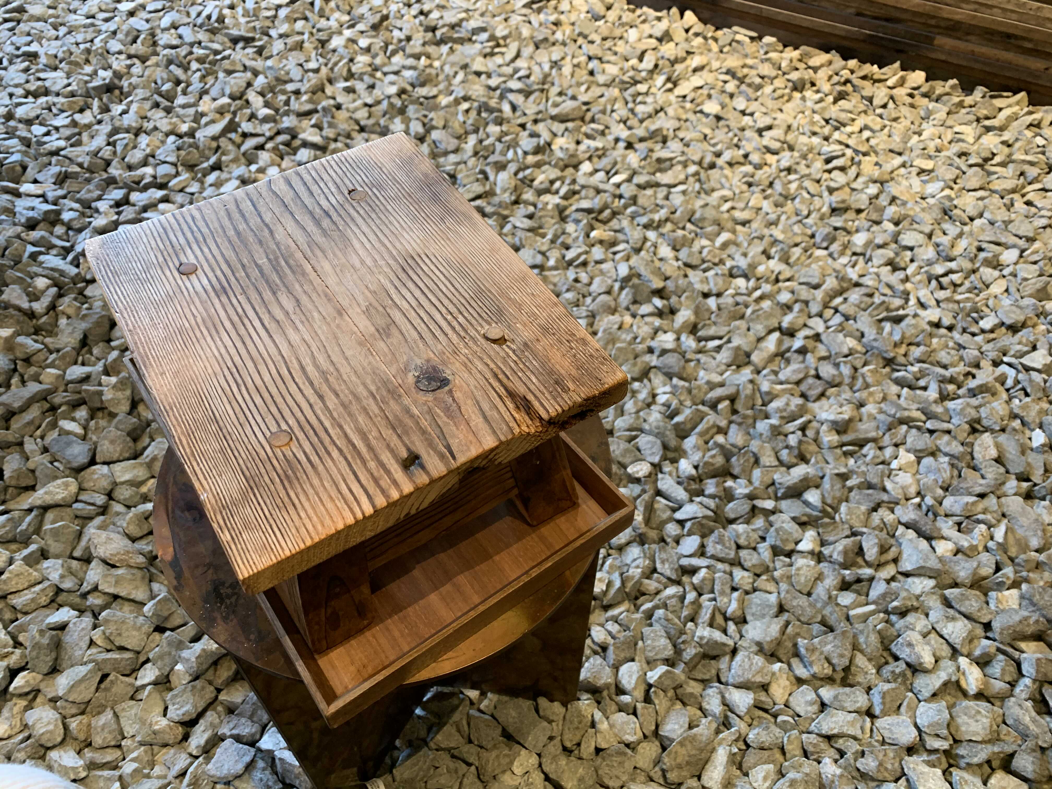 원목으로 만든 작은 테이블의 감성이 좀 귀엽고 아담하고 멋스럽다.